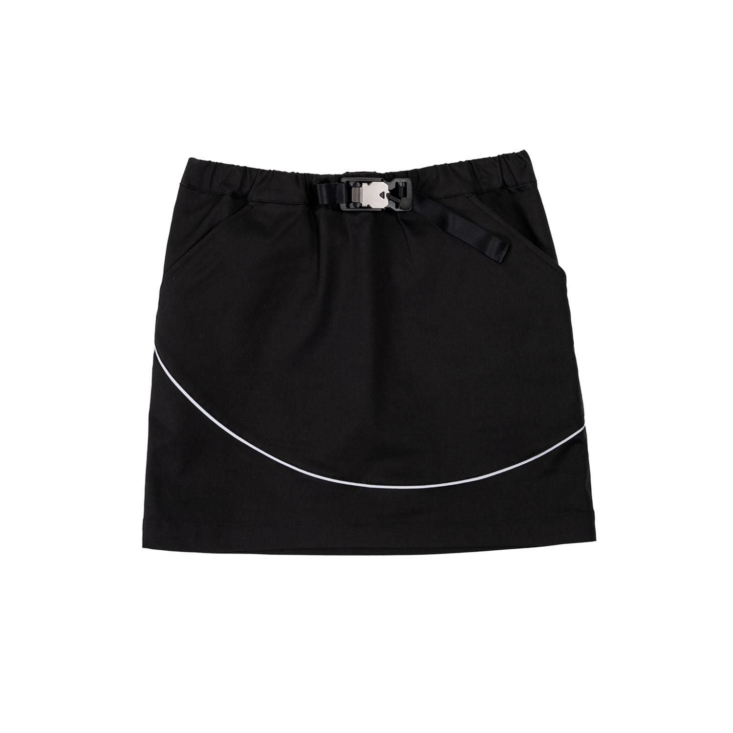 ブランドテーマの一つである「スポットライト」をイメージして、リフレクターのテープを放射状に施した、洗練されたシンプルなデザインのベルト付きスカート。