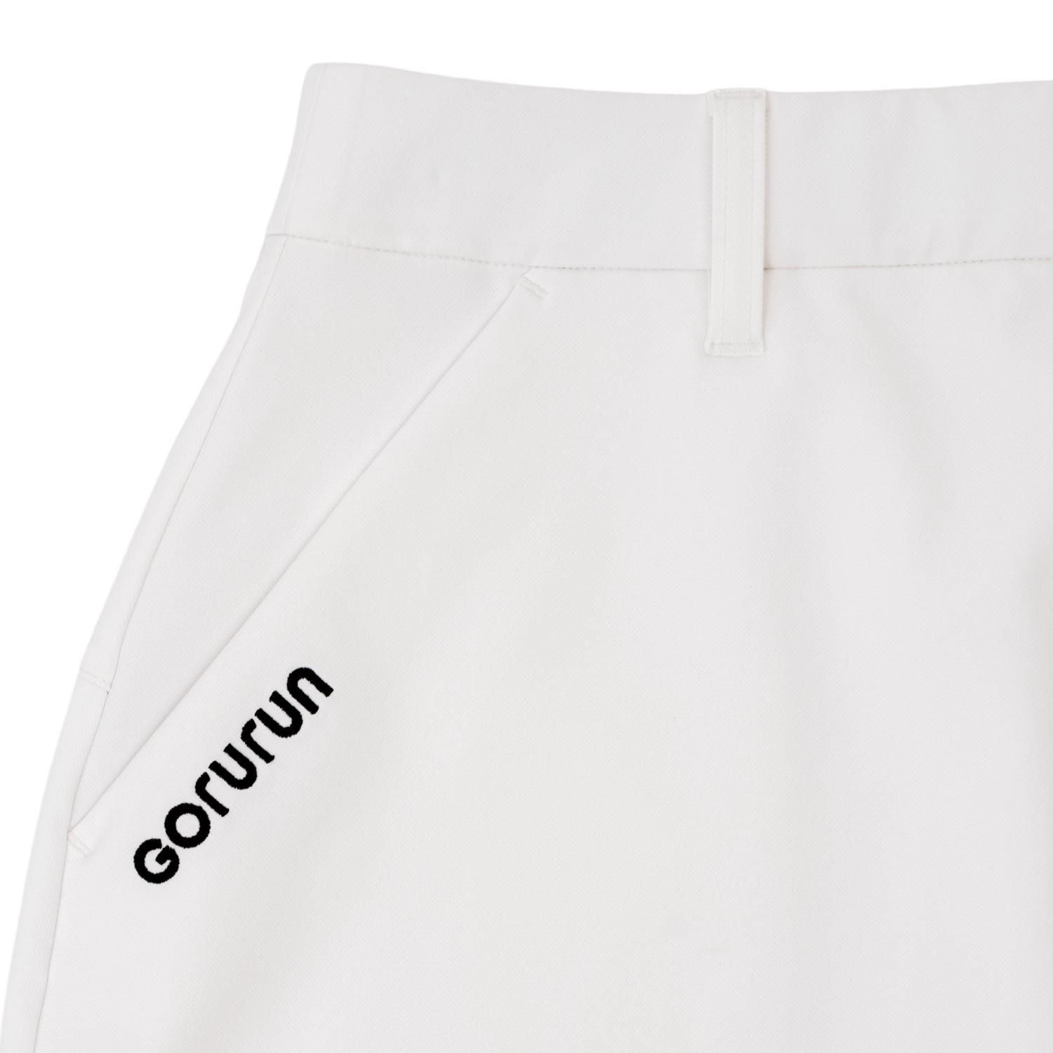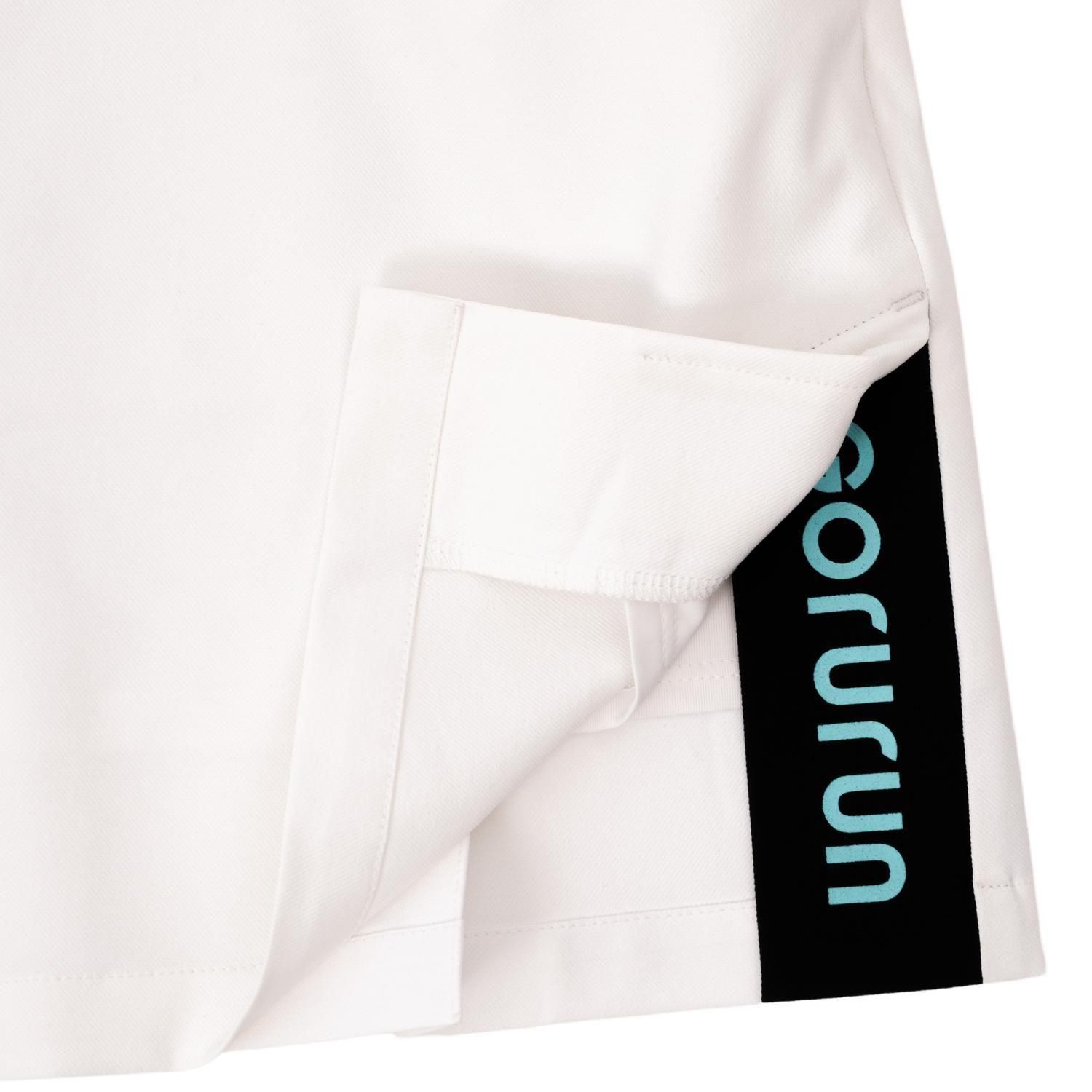 Gururun 刺繍ワンポイントのシンプルな前面は、スイングの際にサイドベントから覗くバイカラーとゴルランブルーのロゴがアクセントとなり、モダンな印象を与えます。